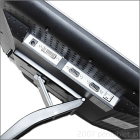 普段は立てて液晶モニターとして,ペンで作業するときには角度を付けて使いやすく、ということも容易にできるよう軽い動作で動かす事が可能です。
